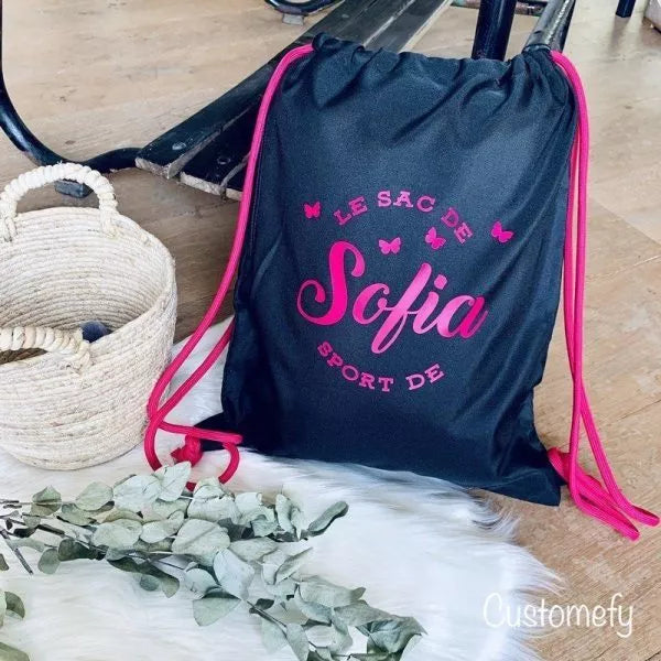 Le sac polochon personnalisé standard (20l) | Noir & fushia