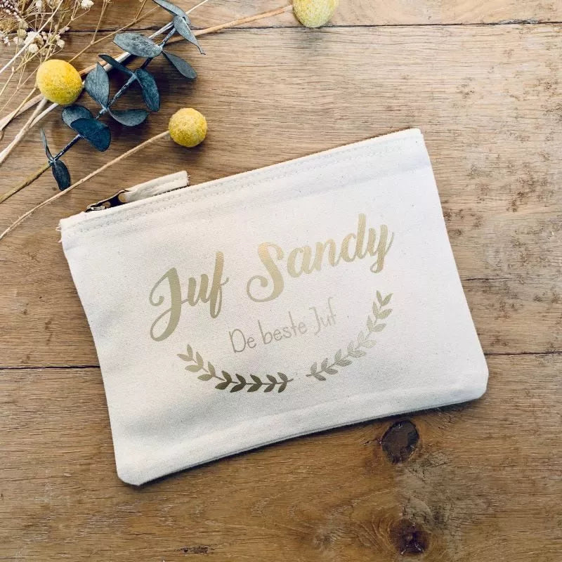 Les pochettes personnalisées sont incontestablement l’idée cadeau n°1 du site ! Parfaites comme petit cadeau clin d’oeil, pour remercier les profs, pour compléter une commande ou faire une demande particulière, comme devenir marraine par exemple, les pochettes sont personnalisées à l’infini: Mamilou, Papilou, Nounou en or, Beste Juf, ou juste un prénom et quelques étoiles, bref succès garanti !