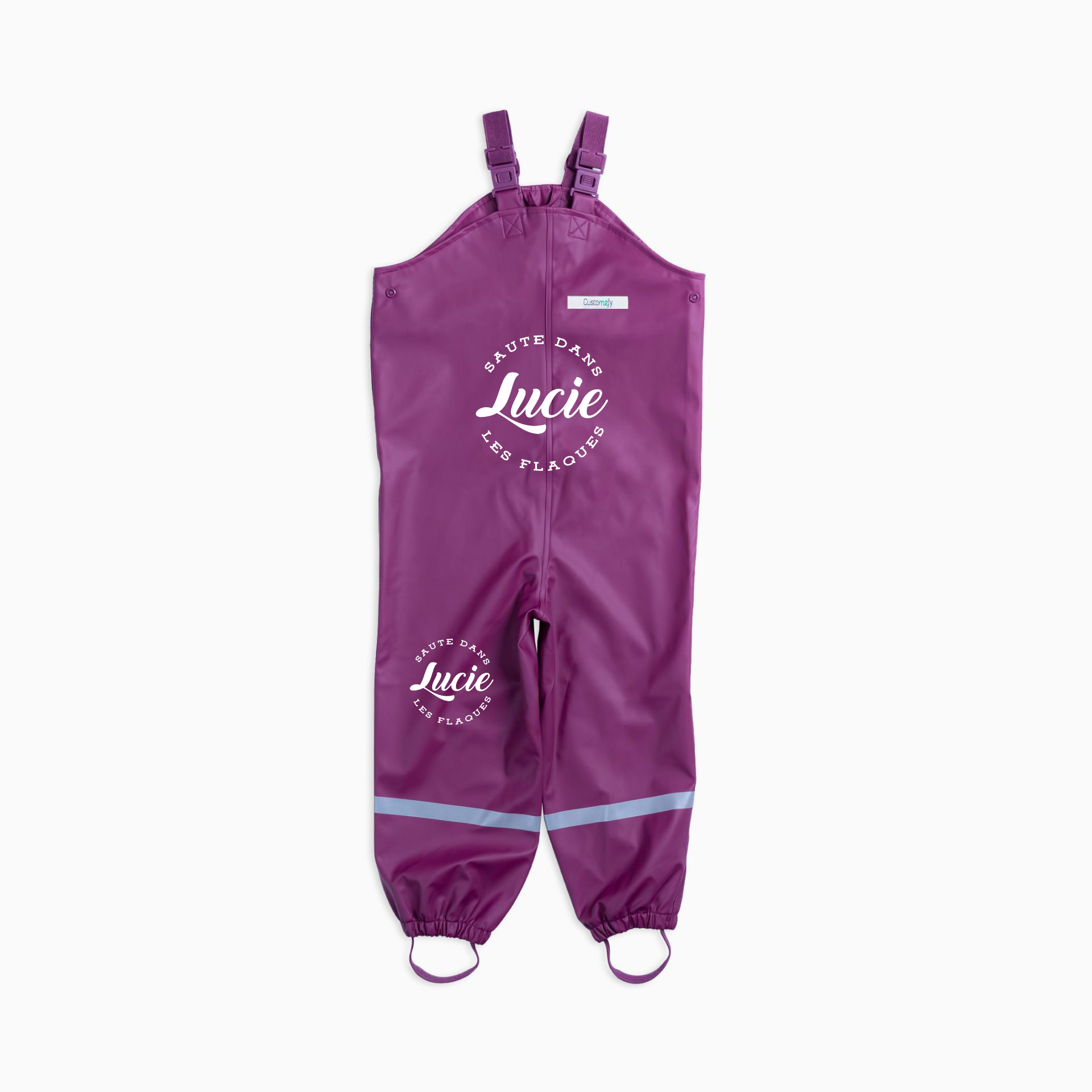 La salopette de pluie Customefy est idéale pour les enfants qui jouent souvent dehors, dans l’eau, la boue ou le sable. Légère, souple et respirante, elle est 100% imperméable grâce à ses coutures thermo‑soudées et à une excellente résistance à l’eau, ce qui garde les enfants au sec toute l’année, même sous la pluie.